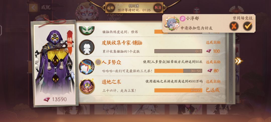 我前几天打百鬼奕用了一把镰鼬,成就直接就满了。我之前基本没玩过镰鼬。