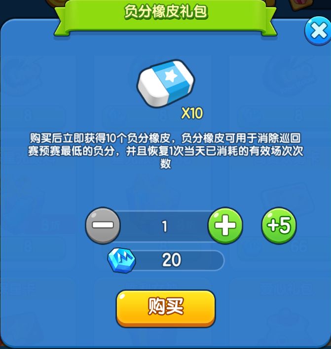 同时上架道具商店的还有“负分橡皮”道具,可以消除巡回赛预赛最低的负分,并且恢复一次当天已消耗的有效场次次数。不过需要注意的是,为了保证赛事公平,负分橡皮并不能在周赛及以上级别的赛事中使用哦,如果对于每天的积分有执念的小伙伴们可以购买使用~