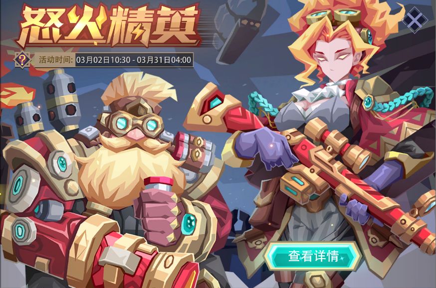 活动内容:活动期间,专属皮肤[精英狙击]与[怒火重炮]限时开启售卖。同时开放售卖的还有[哀恸女妖](暗系新英雄)与[镣铐战士]。