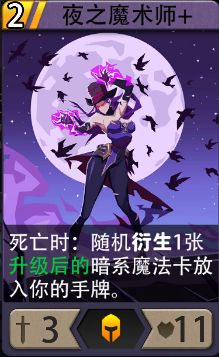 死亡时:随机衍生1张(升级后的)暗系魔法卡放入你的手牌。