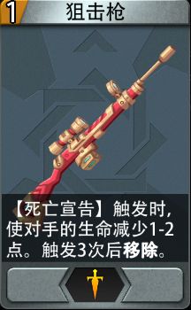 ※狙击枪:特殊装备卡,【死亡宣告】触发时,使对手的生命减少1-2点。触发3次后移除。