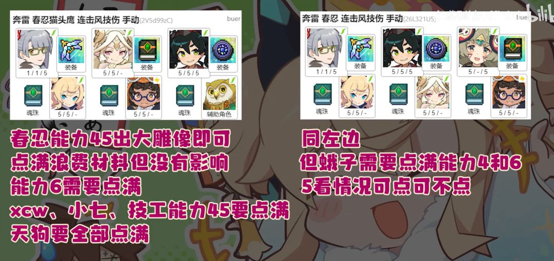 春忍的优点在于,全屏的技能判定范围大更好刷连击数根据浮游手蛾子和猫头鹰的选择有不同的路线