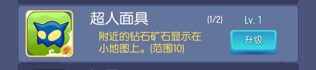 我把超人面具又叫做钻石面具,看面具的功能描述可以知道,它可以让我们在地图上看见钻石的位置。就是说,当钻石的位置进入到以我们位置为中心,10范围为半径的圆圈内时,会在地图视野上出现一个钻石的图标。钻石面具就可以帮助我们更快的收集到钻石,面具效果在视野内和地图上分别如下图所示。