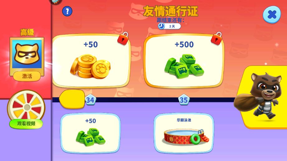 另外,在游戏中,还有友情通行证的玩法。友情通行证需要我们抓住偷走了装饰的怪盗罗伊。抓住罗伊需要我们等级达到35级以后,但路程中我们可以获得大量罗伊背包中的装饰品,获取经验的方式也很简单,只需要陪伴宠物完成需求就可以了哦。
