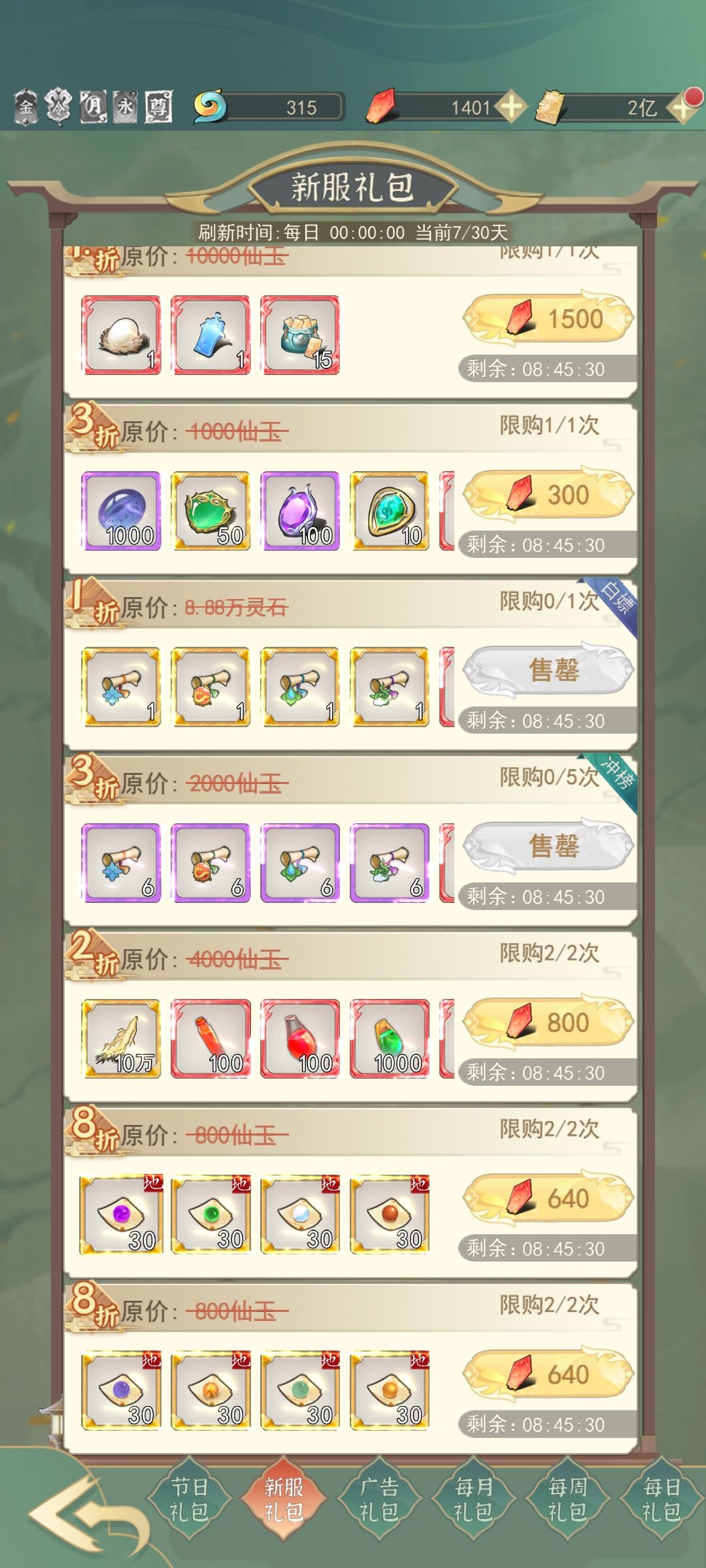 基本上一个小时左右就能达到元婴六,七或者大圆满。把该领取的礼包都领了,主线也点一点,就可以安心下线啦,记得保证身上要有10000玉左右喔,当然越节约越好,具体看自己玩法,本人可以节约到一万五左右。