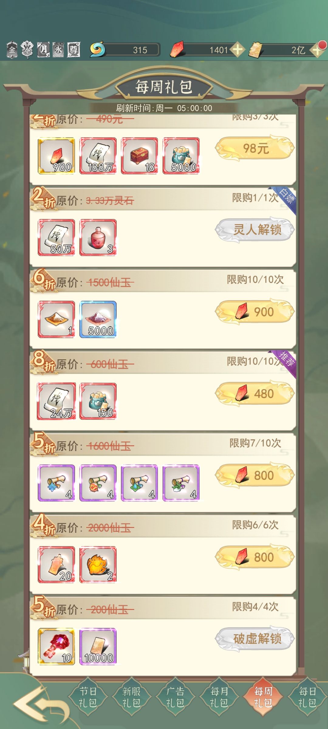 我们的目的是以最少的时间和最少的精力换取仙玉,可以根据游戏每个星期的开服时间来规划,在新区开放在第三天的时候进行创号结缘,凌晨十二点上号就可以直接炼虚,领取大量仙玉