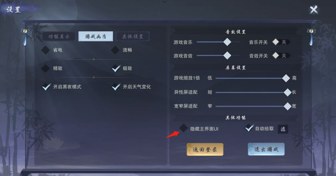 最后,也可以在墨武侠的设置中,可以选择"隐藏主界面UI"