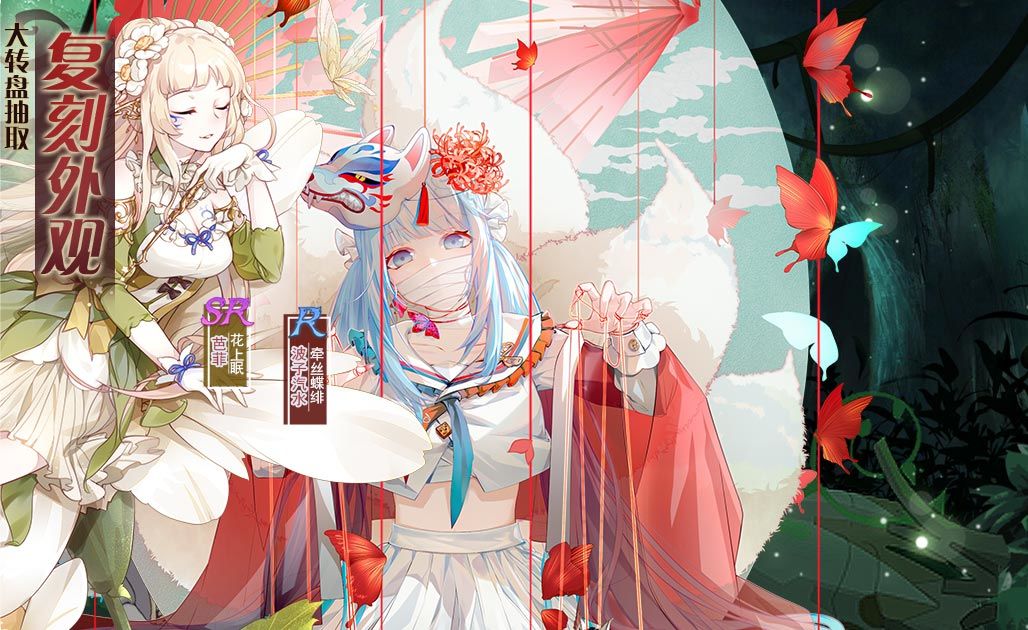 活动描述:活动期间,往期活动副本复刻,御侍大人可重新体验副本剧情并收集道具,兑换SR纽结糖外观-青芳甜梦。