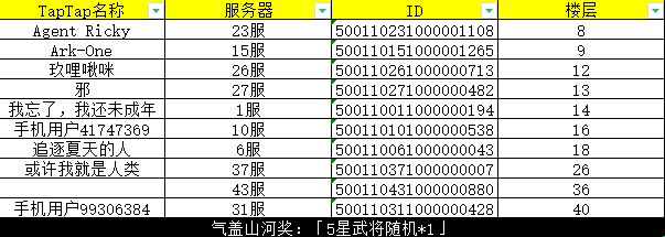恭喜以上十位玩家获得本次奖励