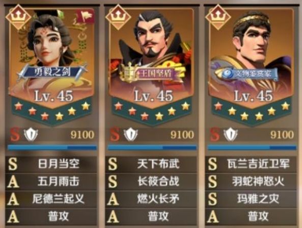 织田信长全智力二速,武则天一速加智力,君士坦丁三速主防御。