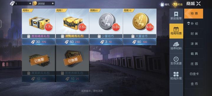 礼包冲战看缺少的适当购买