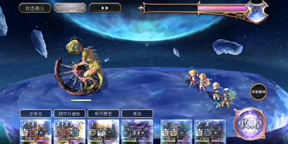 1.需要鱼妹打弱水的boss,所以开局换赛尔杰开斩魔阵,鱼妹、赛尔杰双C