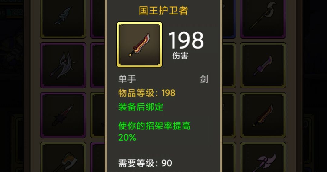 保存仓库,近战生存神器,双持国王护卫者➕40%招架➕适量回避属性(不用加🈵,闪避➕格挡=100即可)保证生存