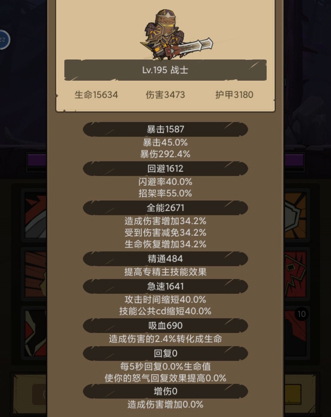三,萌新1级升🆙到195级会暴毙,需要耐心,升级时可以把回避属性(闪避➕招架=100)左右➕适量吸血属性会更稳