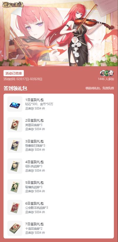 钻石*500、金币*500,000、英雄召唤券*3、怪兽祭扫荡券*3、组队挑战券*3、秘境挑战券*3、公会副本挑战券*3、十连召唤券*2!!