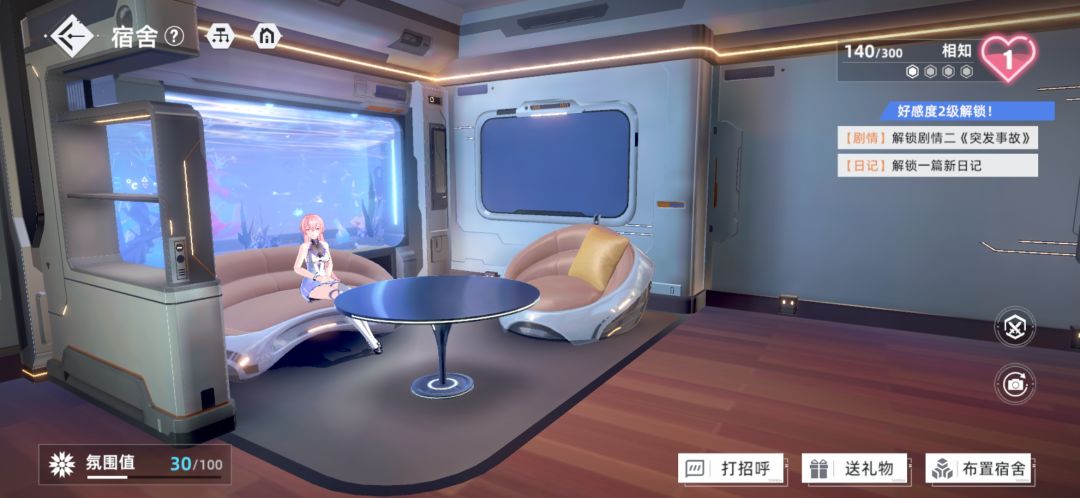 特色方面当然就是单人宿舍了,角色有专属宿舍,都是纯3d建模,宿舍内当然也能与角色进行互动提高好感度,也能布置家具,目前来看还是相当不错的,而且也能处理未来可能过多的家具套装。
