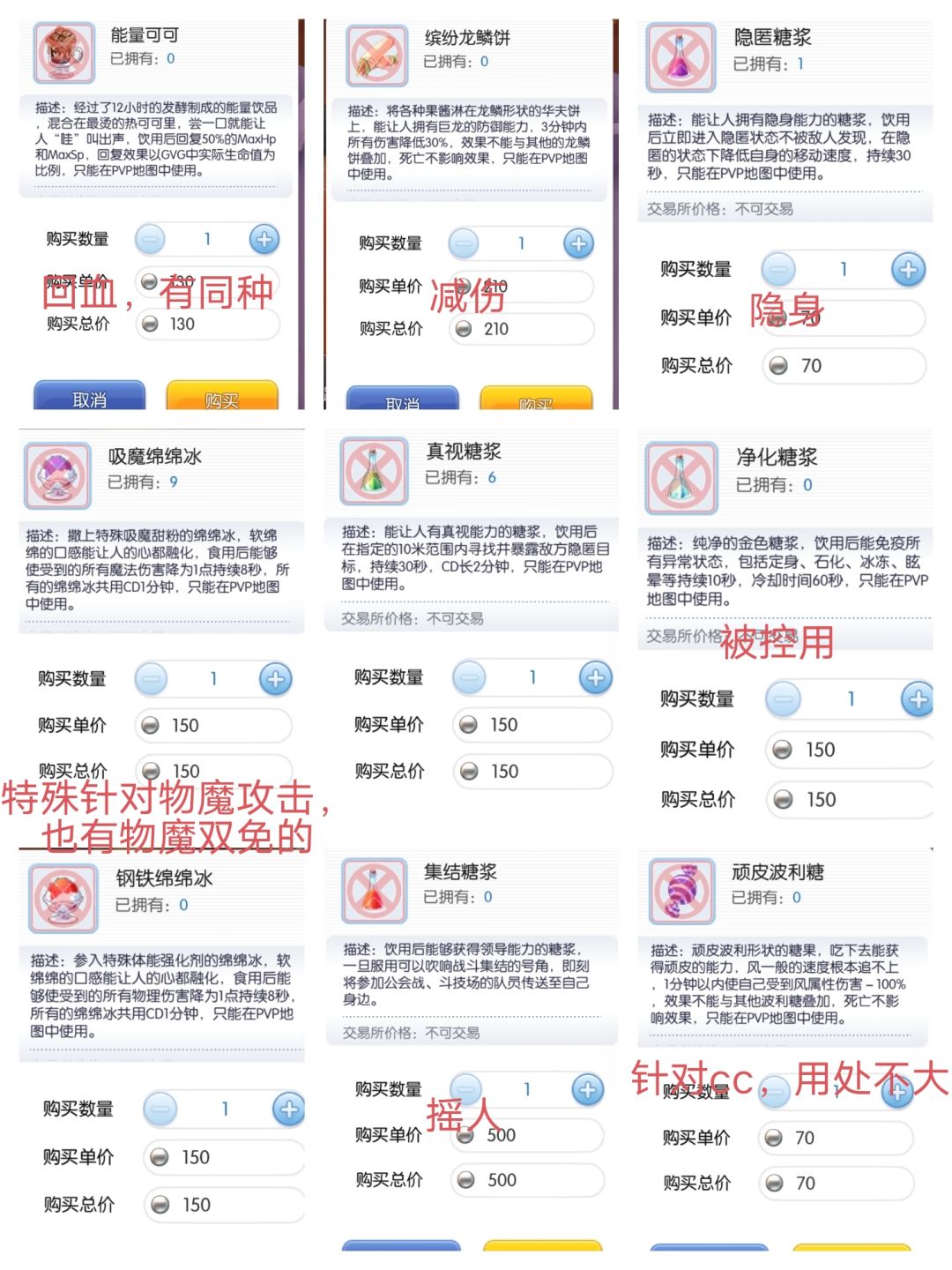 里面会卖一些gvg用药水,各种用途都有,可以用团结之证或者Zeny买,建议在开始之前去买一些放在快捷栏里。