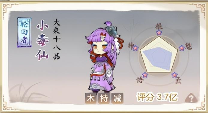 小毒仙作为一个专攻毒术的一个轮回者,拥有木灵根,适合装配木系技能。可以给战斗中的敌方目标施加减益,同时可以持续叠加伤害,在前期时比较弱,但是一旦叠加到后期就可以对敌方目标造成大量的伤害。