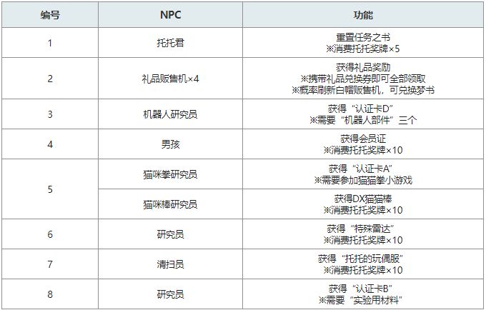 3、收集10个奖牌,在研究所购买“托托的玩偶服”,在秘密工厂完成小游戏,获得“认证卡C”。