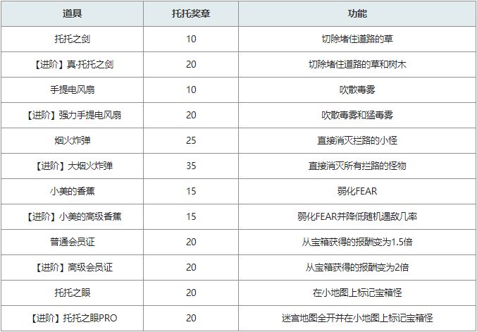 3、所有功能道具购买完以后,可以在此处用托托奖牌购买“礼品兑换券”。