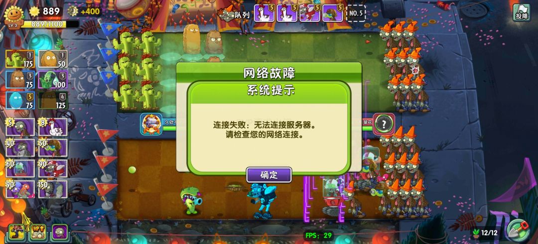 打了9把,七把全部打到一半快赢了显示掉线,网络错误,我看到一堆没头像的,头像是绿色豌豆的,我就在想是不是这些人都是刷的号,所以联网的时候老是错误,能不能管一管这个模式,也管一管刷号的,服务器能不能稳定点。真的打的我都想掌掴官方,给点力啊,这么好的游戏,服务器那么拉吗?尽快解决这个问题啊