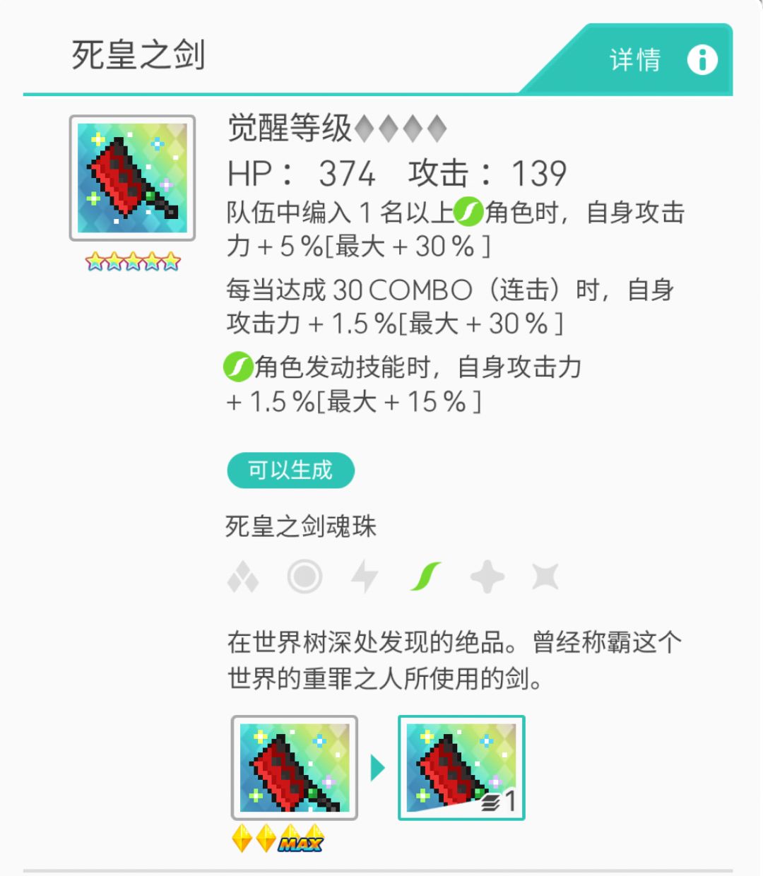 看看死皇之剑的属性和效果: