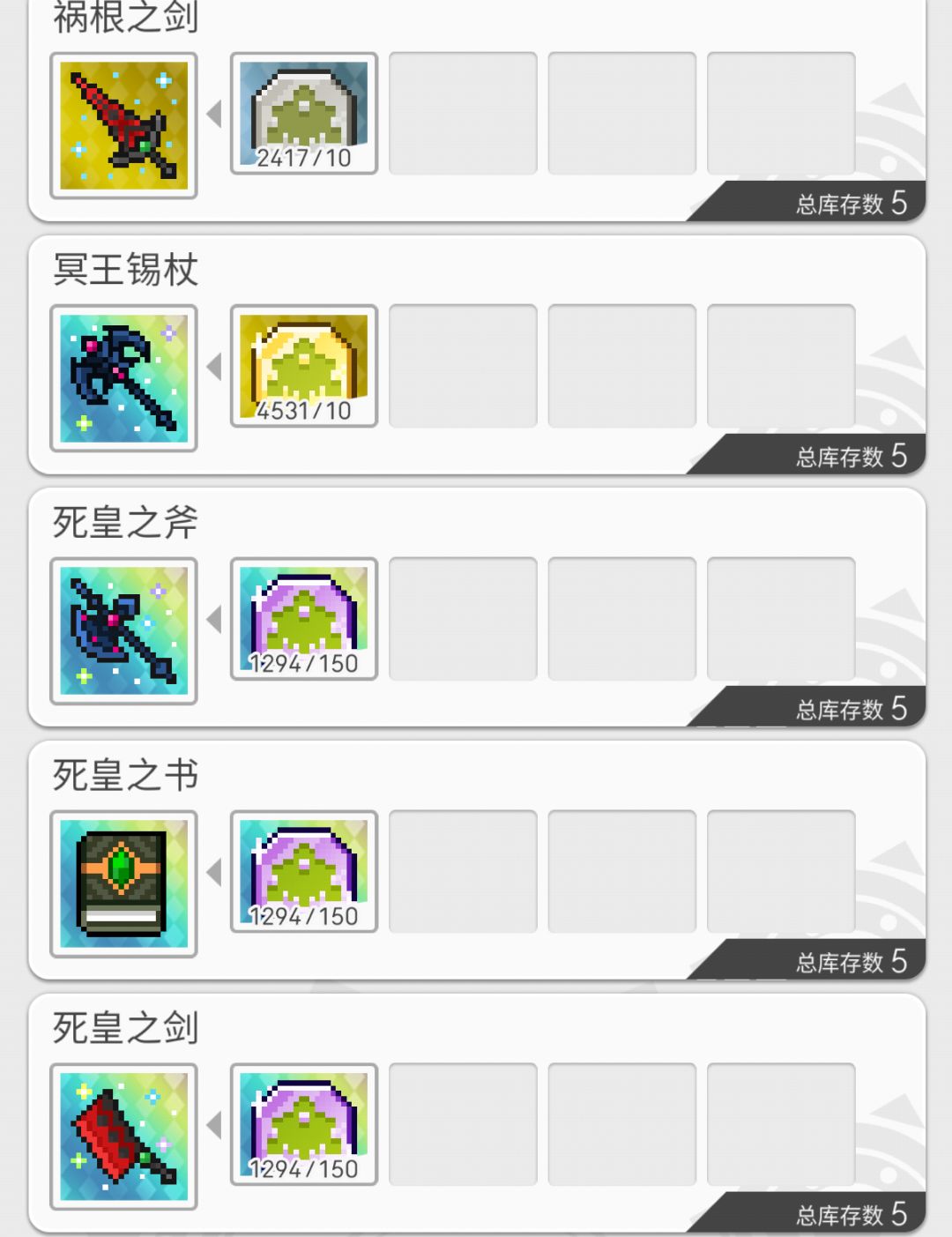 这里我们就能看出来了,不死王副本提供的四把武器(什么?祸根剑也算武器?)中,有三把都是跟技伤风适配的,通过刷超风毕业三把武器后,第一个技伤风队伍就能够很快的成型,多的币可以把风属材料全部换完,这样玛娜板也能点出不少,伤害进一步提高。