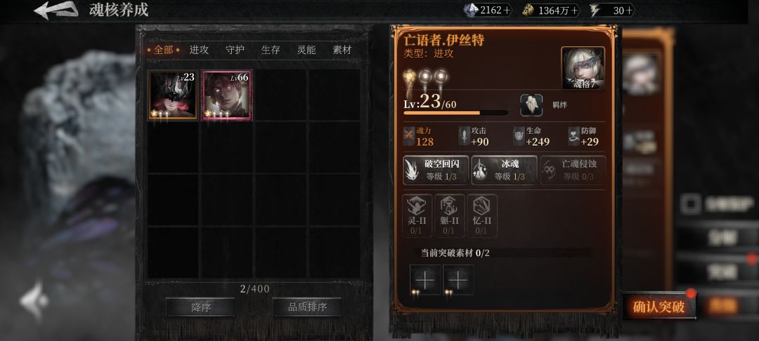 魂核后期突破要消耗同阶级卡,金要吃金,原初要吃原初,红要吃红,离谱的是红上面还有红彩,只有边框买颜色对上了才有被吃了突破的资格,满级突破160,吓死人咯,别和我说紫卡蓝卡能升了当狗粮,颜色不对没资格被吃,仔细看材料栏的边框颜色