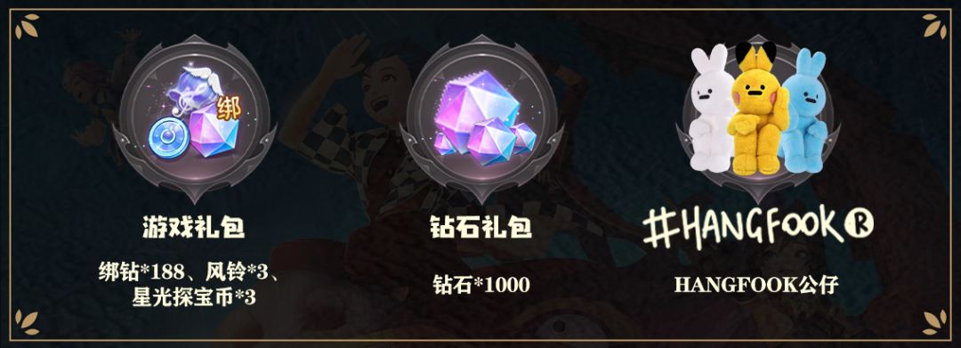 ③楼层达100层,追加2位千钻锦鲤,包邮送出Hangfookart萌趣公仔*1+1000钻石游戏礼包。