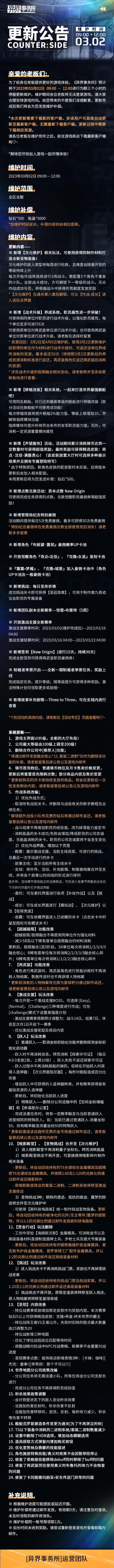 正值新版本实装之际,我们非常感谢老板们对游戏的喜爱与关注,并积极地为大家筹备后续的丰厚福利,也请老板们保持对管理局情报的关注。
