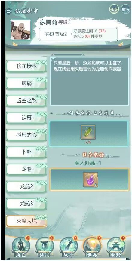 【仙城家具商好感度达到5点及以上,即可获得奖励】