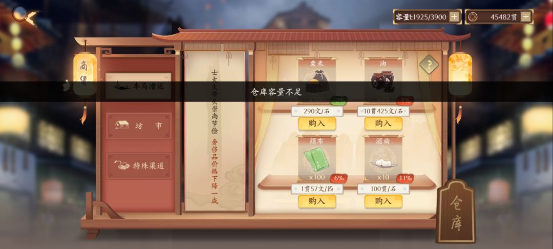 反馈,数据出错买不了东西了,仓库也就2385的盐,容量有3900,想买东西一直提示不足