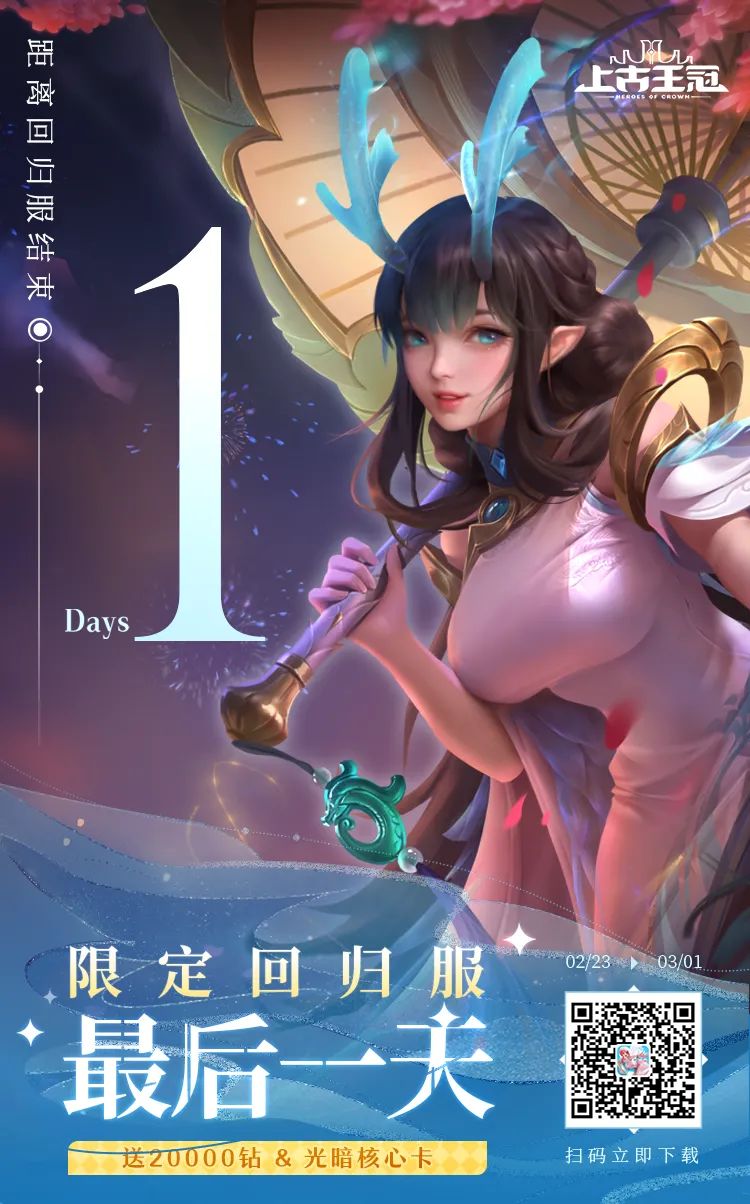 古古温馨小提示:今天是回归服活动的最后一天啦,想参加的小伙伴抓紧了哦~ 20000钻石、青霄龙主心意自选、传说级皮肤等海量回归服专属福利等你来拿!