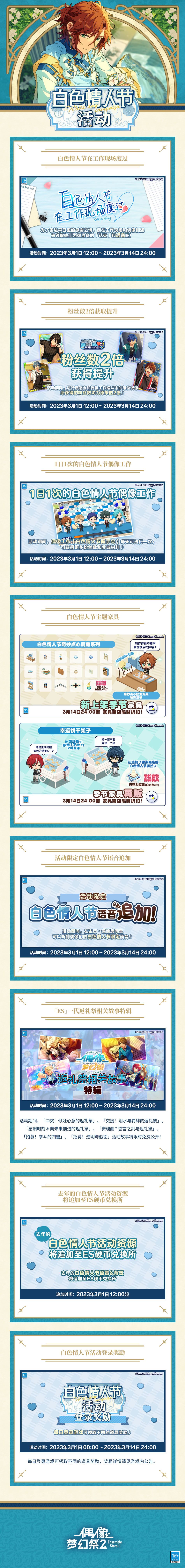 3月1日12:00起,ES硬币兑换所将追加去年的白色情人节活动内容语音、背景、迷你对话。