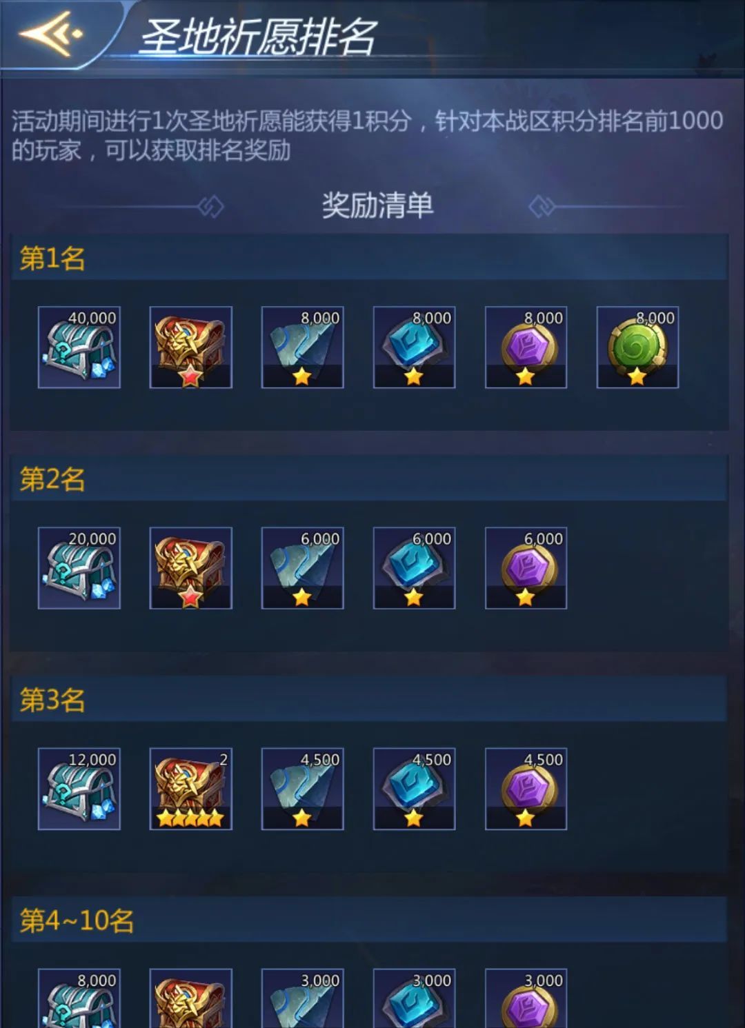 1次圣地祈愿可获得1积分前1000名可获得排名奖励