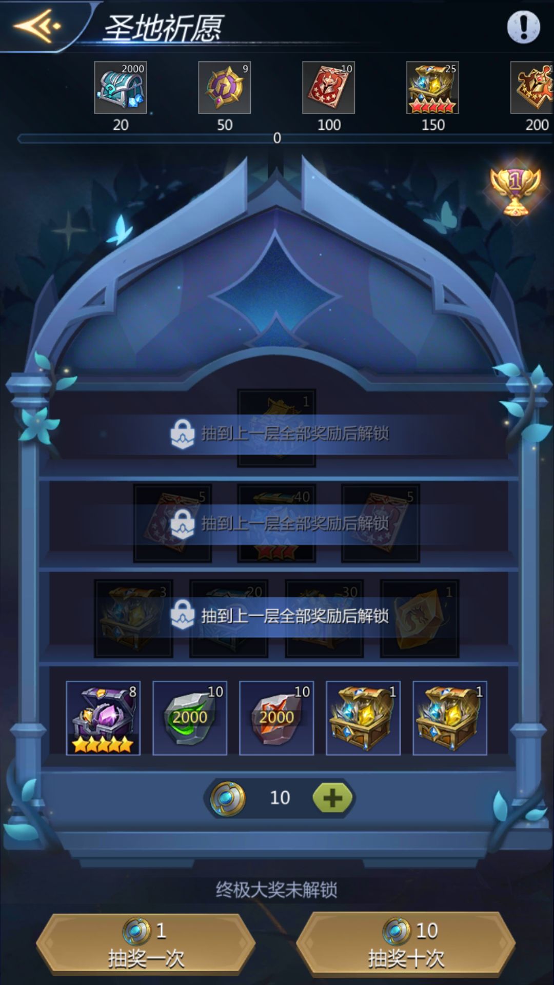 2.圣地共分4层,默认解锁第1层。将所有奖励至少抽到1次后解锁下一层。(以下仅为测试环境截图,最终以活动界面为准)