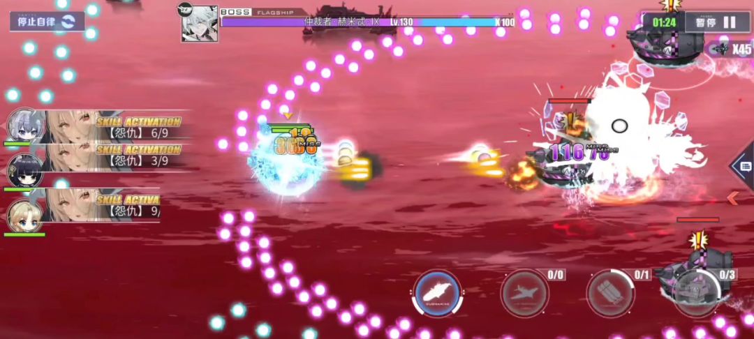 炮队打16秒轴绕过boss的20秒盾,由于大炮索敌机制敌方小怪甚至自爆船都会吸引炮击,加上boss机动闪避高,实际炮队打这个boss不好一刀,但由于怨仇还没练,航队等后面再试试。