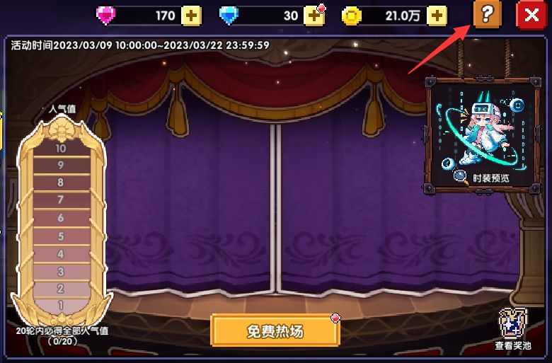 3、抽到“人气值”道具可积累人气值,集满10点人气值可召唤舞台演员出场,获得其专属时装、动态头像等稀有奖励!