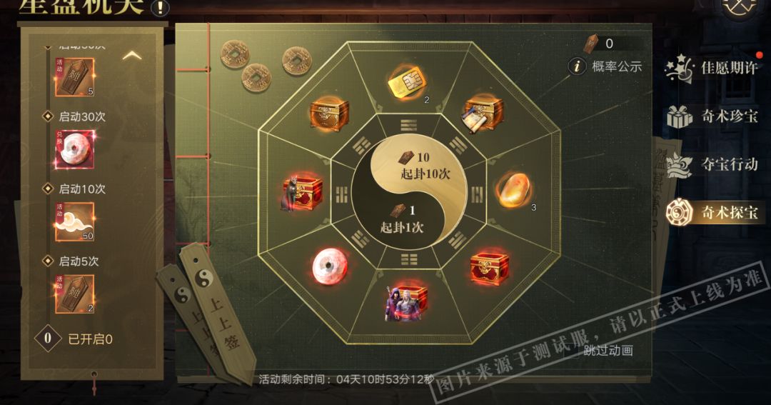 *奇术令签可以在奇术探宝活动中使用。