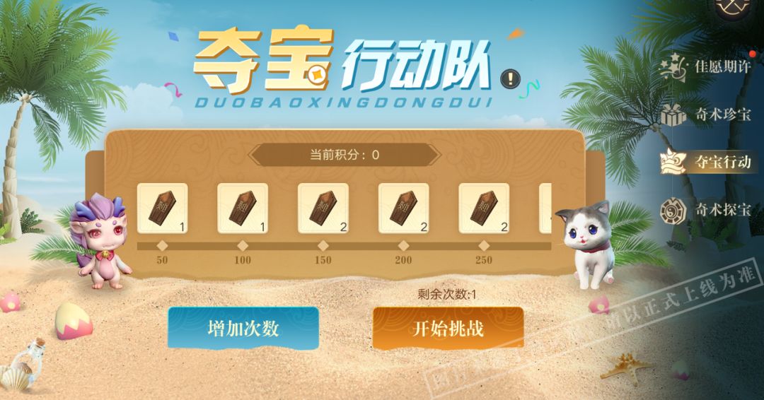 游戏结束时,根据4名弟子的活动道具数量进行排名,获得对应奖励。并可获得积分。