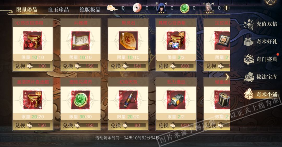 【奇术小铺:限量珍品限时兑换,绝版极品待你来拿!】