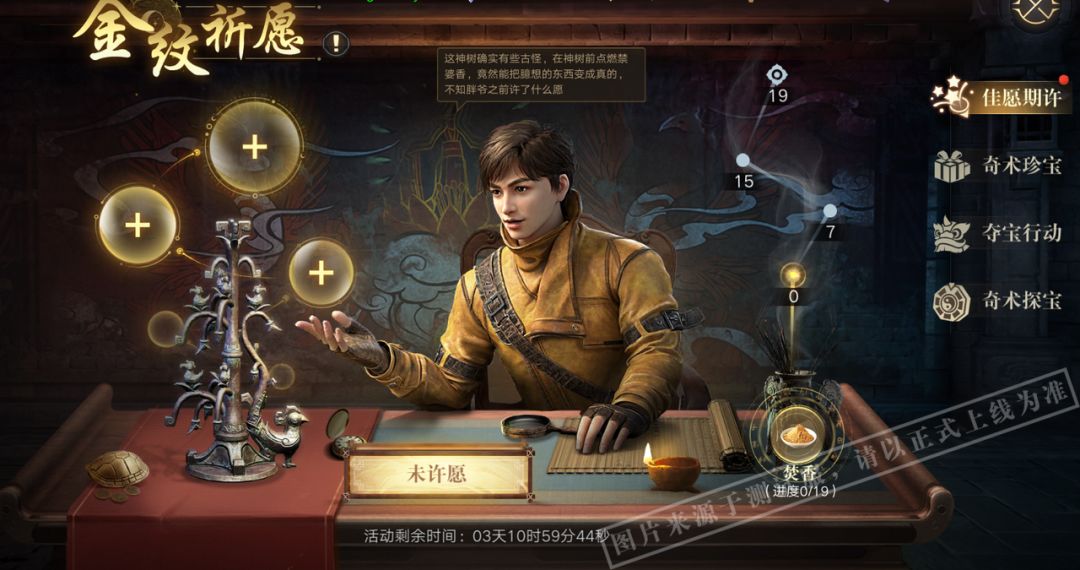 活动期间,弟子们每日可选择三个奖励进行许愿。