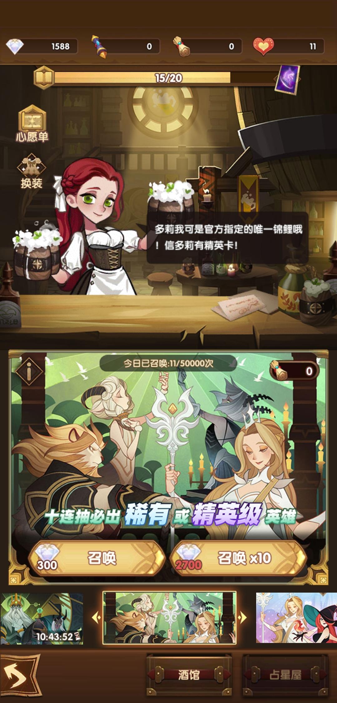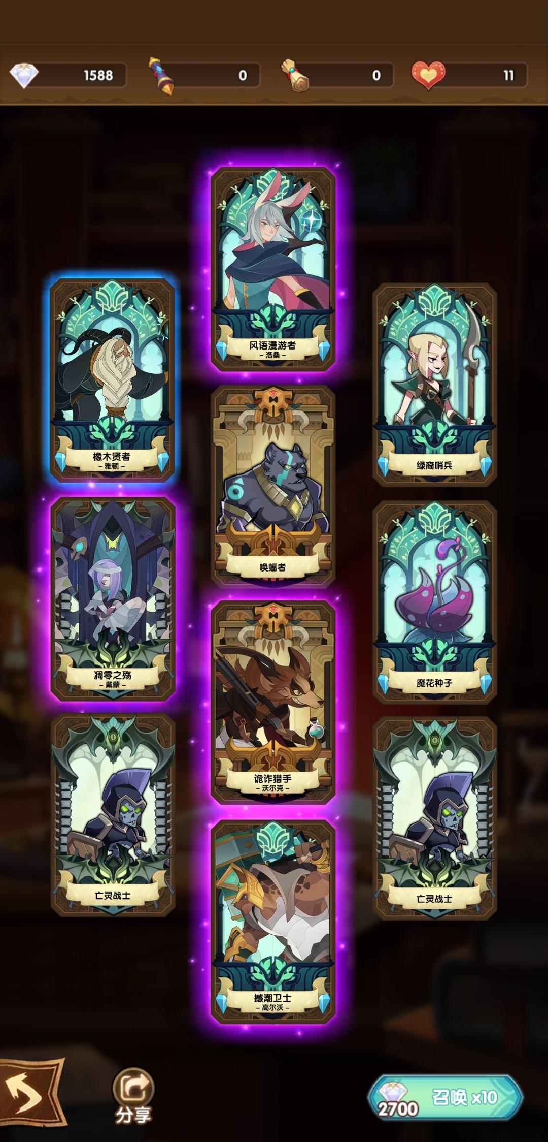 兄弟们不当人了,今早每日任务那张券单抽女骑,由于昨天才十连出紫,所以不是保底,然后刚刚lls发了三千钻的码,我十连竟然四紫,还全是我想要的,最后发现可以开个种族紫卡了,想玩绿控就想再来只乌龟,结果真来了,我直接爽翻天