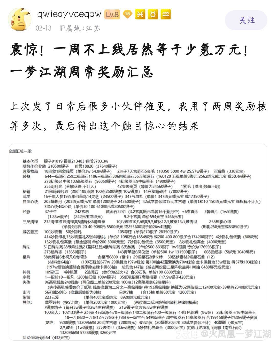 【震惊!一周不上线,等于少氪1万元宝!一梦江湖周常奖励汇总】