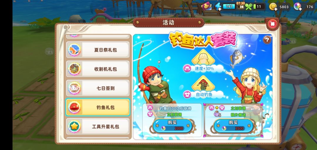 ④工具:在工具上氪金真的没什么必要。我的二级鱼竿升到三级鱼竿花费了两万珍珠。这一切只为了钓三四条鱼单上所需的鱼,而这些鱼单上的鱼直接用珍珠补的话只需要花费几十珍珠。所以,鱼竿的材料还是慢慢攒吧。勤奋的话,一般挖一个星期的矿就可以合成三星鱼竿。