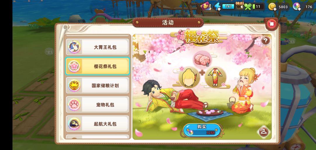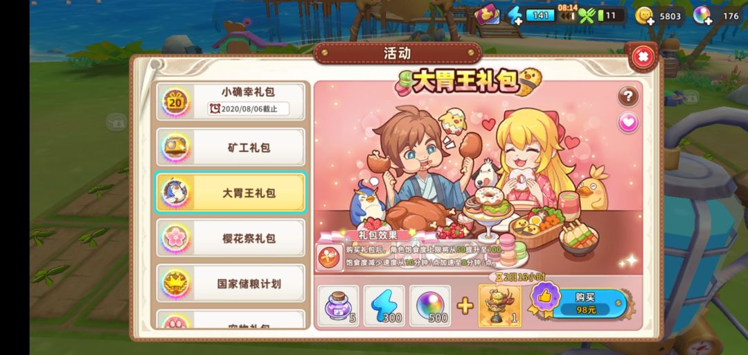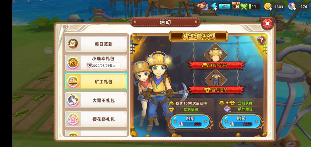 ①服装礼包:这两个礼包购买后可解锁樱花饼和冰棍每天限制只能做一次,加50体力。但不推荐买是因为,如果已经有我上面提到过的那些礼包和开了发明工坊,体力完全够用,并且根本用不完。(土豪随意)