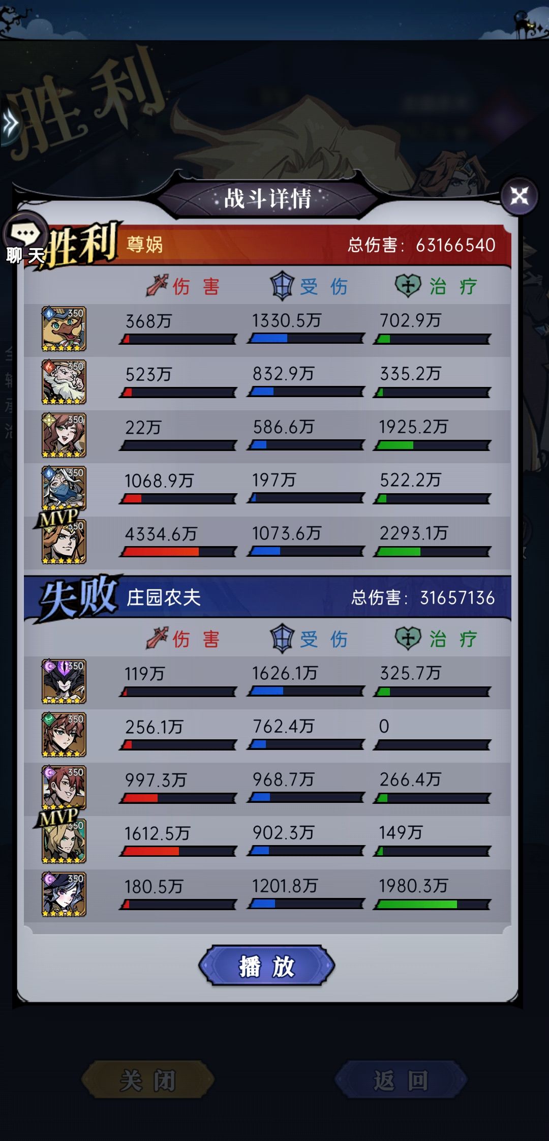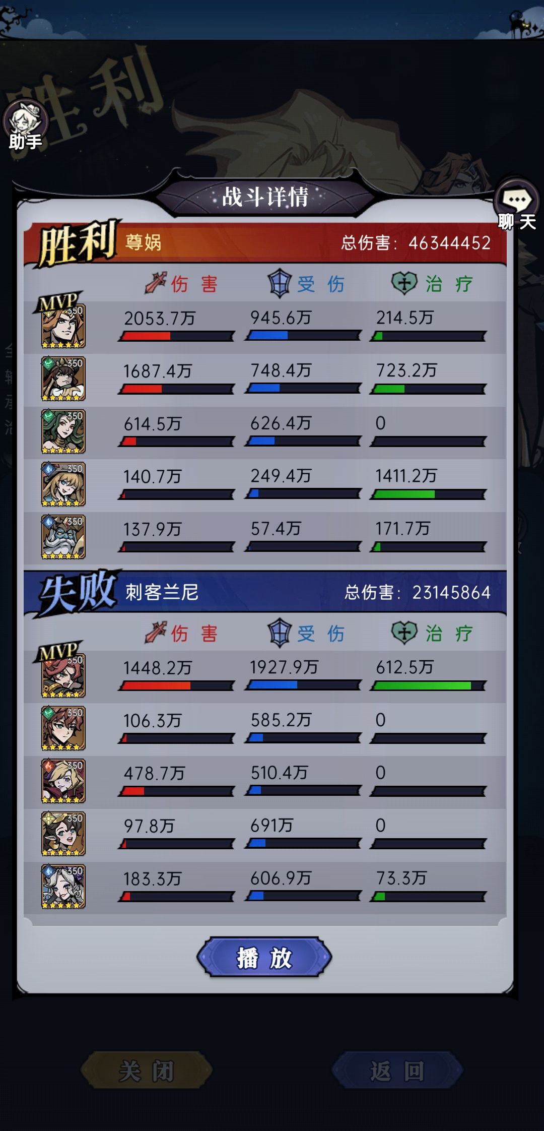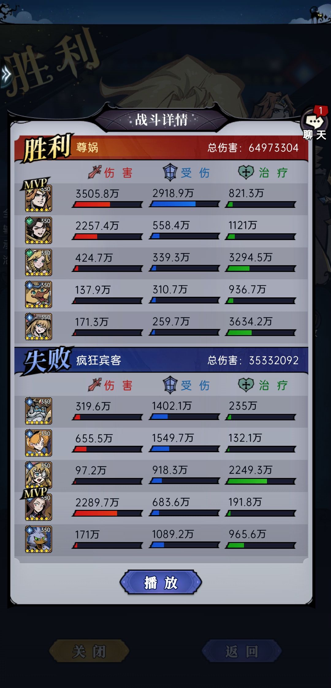 第一天的没截图,第二天确实把我打不行了,分享下通关阵型