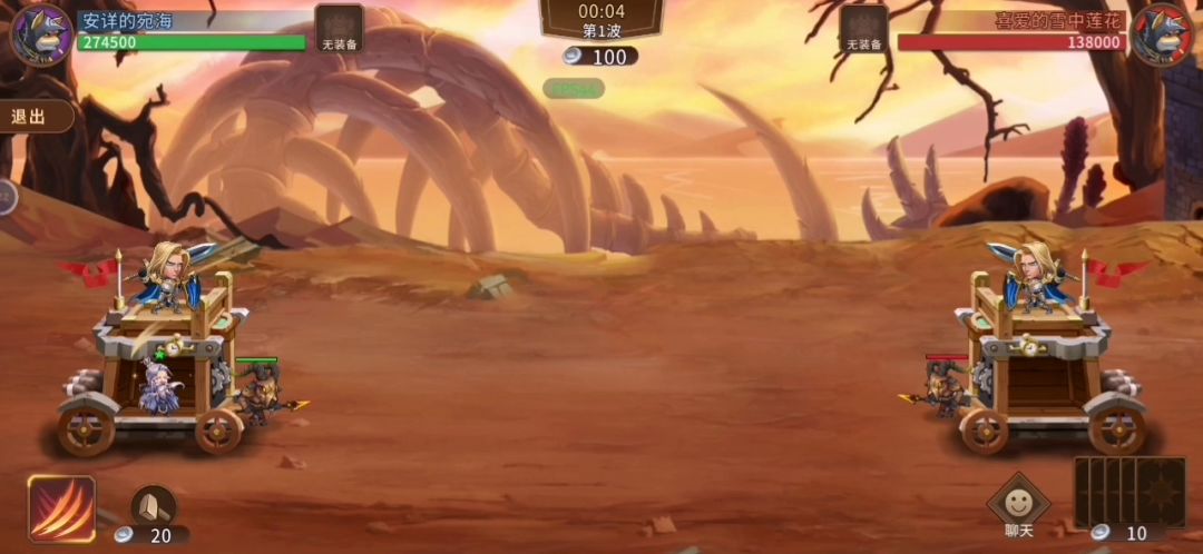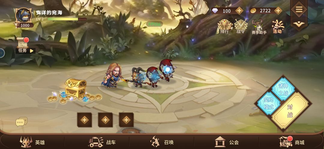 这是主界面共有三种模式战斗玩法,左侧宝箱处为挂机奖励,下面三个加号可选择开启拥有的宝箱(需要时间)