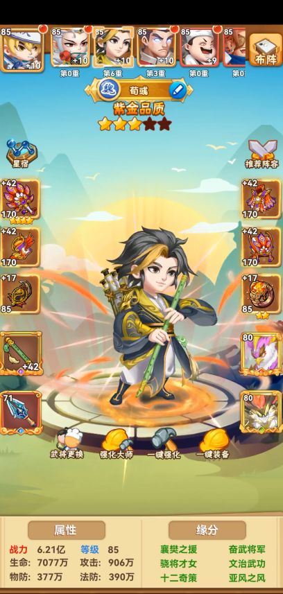 一轮5期神装,可以做3次。武将、武器、配饰是必须,还剩下一次选择三大件先激活图鉴,然后再升主C的三个