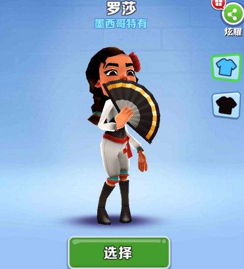 今天我们要介绍的形象有是罗莎,是墨西哥版特有的一个形象,这个形象是墨西哥版本的一个形象目前是暂时没办法购买的,外观还是非常不错的一款形象,这个形象应该是一个跳舞的装扮的,特别是这个扇子,外观还是非常不错的,看着是非常好看的。接下来我们一起去看看装扮和滑板属性吧。